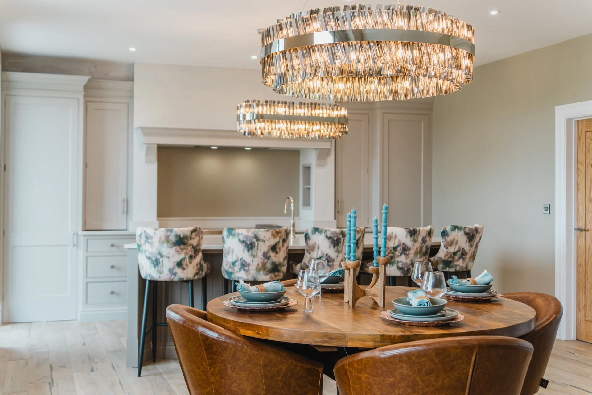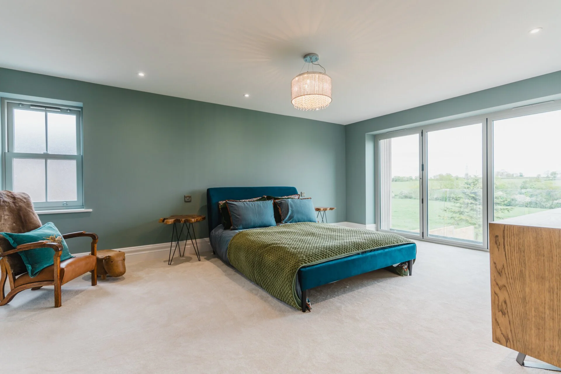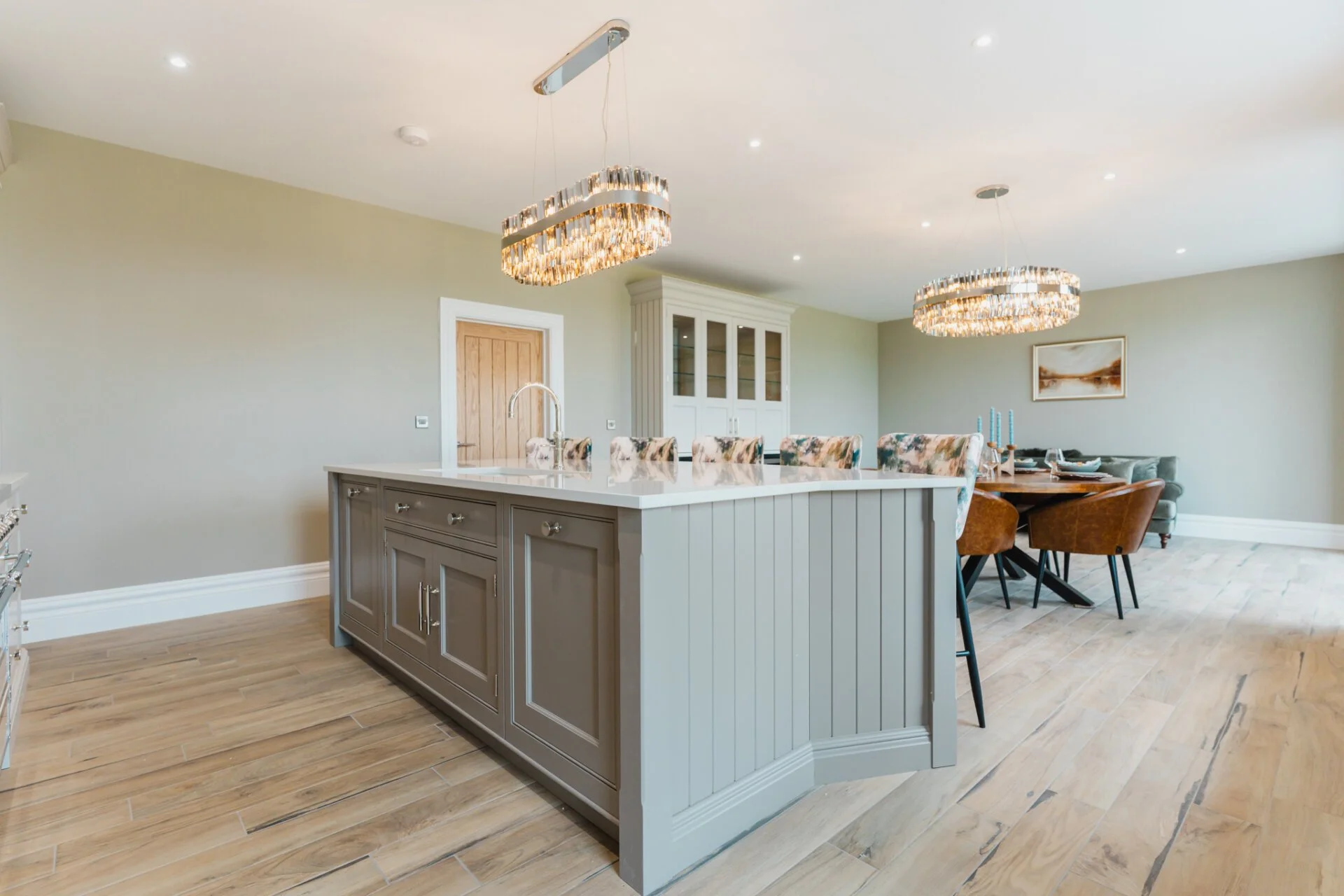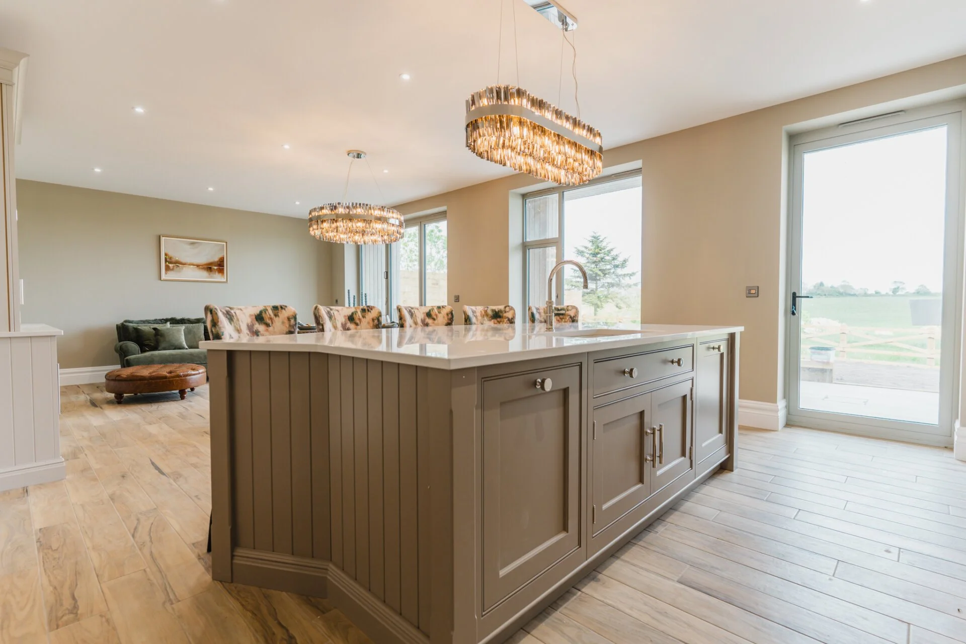 Upon entering Mulberry House, guests are greeted by a stunning hand-made designer kitchen by Tom Howley, featuring exquisite quartz worktops, a central curved island with an inset sink and Quooker tap, a Bertazzoni Range cooker features as well as a separate pantry room, making it a chef's dream. This spacious open plan kitchen, living, and dining area boasts bi-folding doors that effortlessly connect the indoors with the outdoors, offering a seamless flow to the expansive rear garden with awe-inspiring countryside views.
