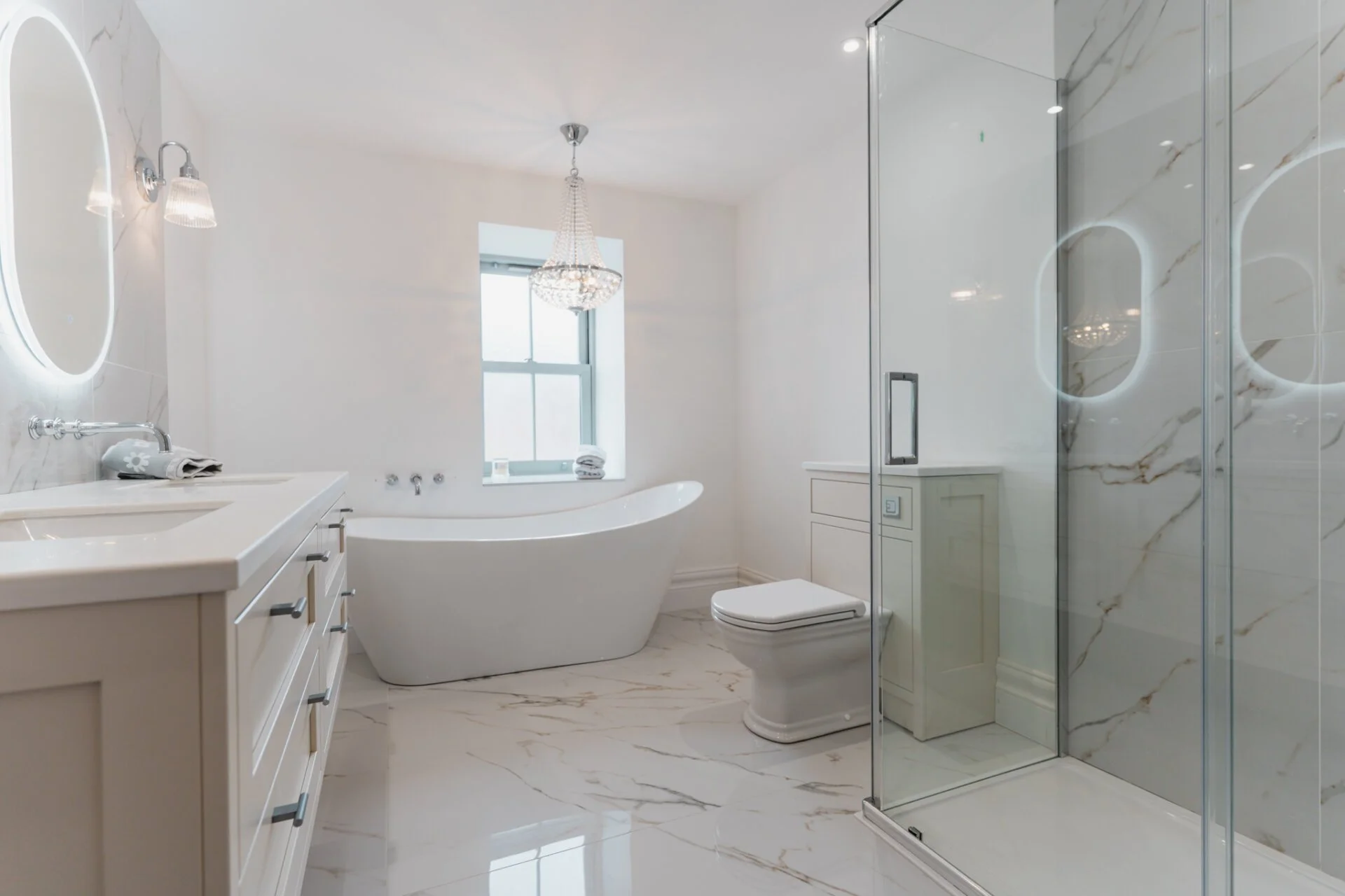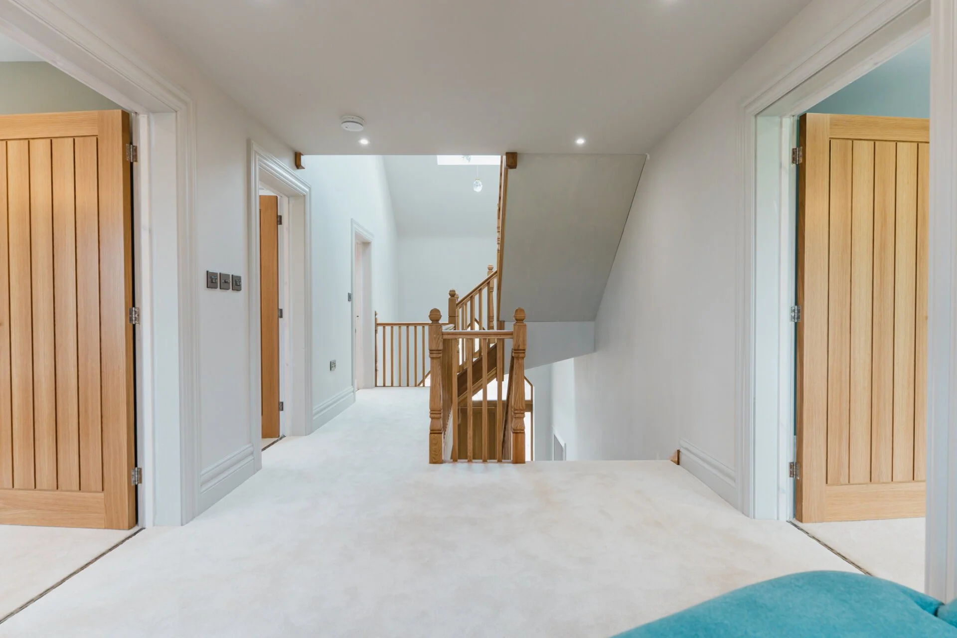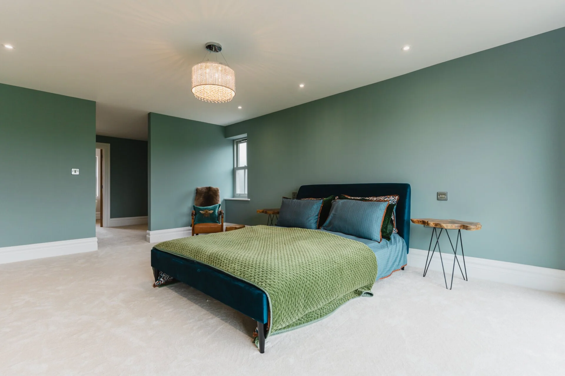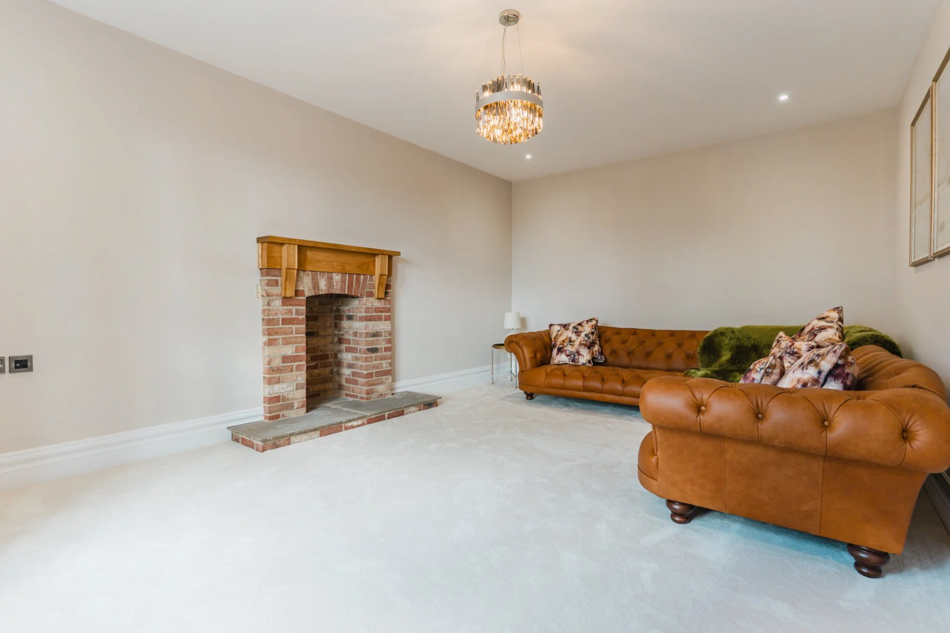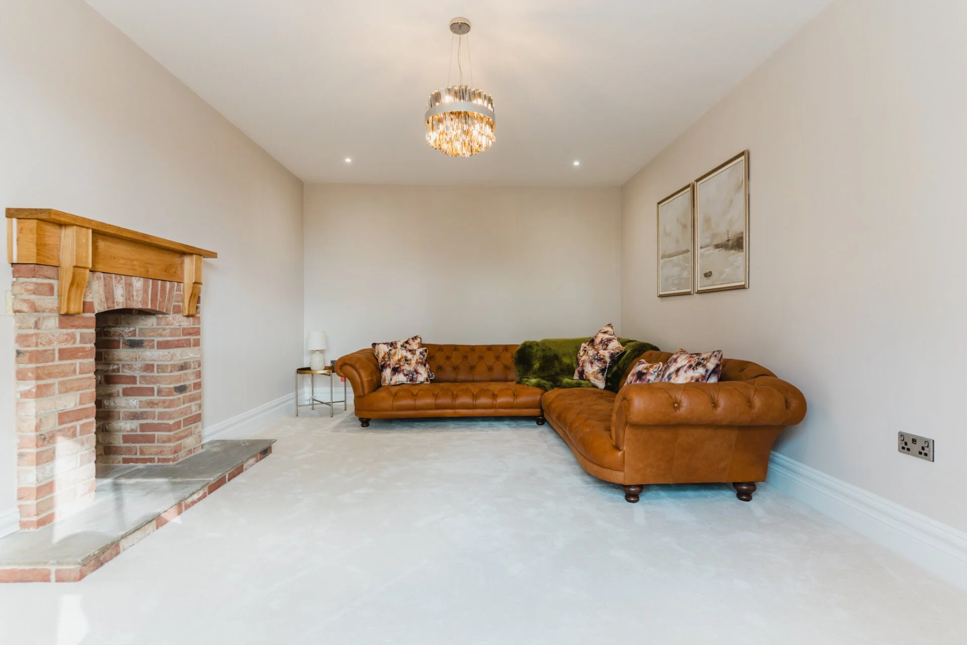 The property graciously unfolds with a generous entrance hall showcasing full triple height ceilings, leading to the living room, study, and the heart of the home, the open-plan kitchen. The living room exudes warmth and character with a striking exposed brick fireplace and solid oak mantle, creating a cosy retreat. The ground floor also features a versatile space currently used as a study but can easily be transformed into a playroom, snug, or additional bedroom. The first floor is home to the master bedroom, a sanctuary of tranquillity, with bi-fold doors opening to a Juliet balcony, overlooking the picturesque countryside, a large walk-in wardrobe area, and a luxurious en-suite bathroom with a four-piece suite. Completing the first floor are a further two double bedrooms and family bathroom. The second floor offers two additional double bedrooms with en-suites, all designed by Vanity Hall, ensuring comfort and convenience for all residents.