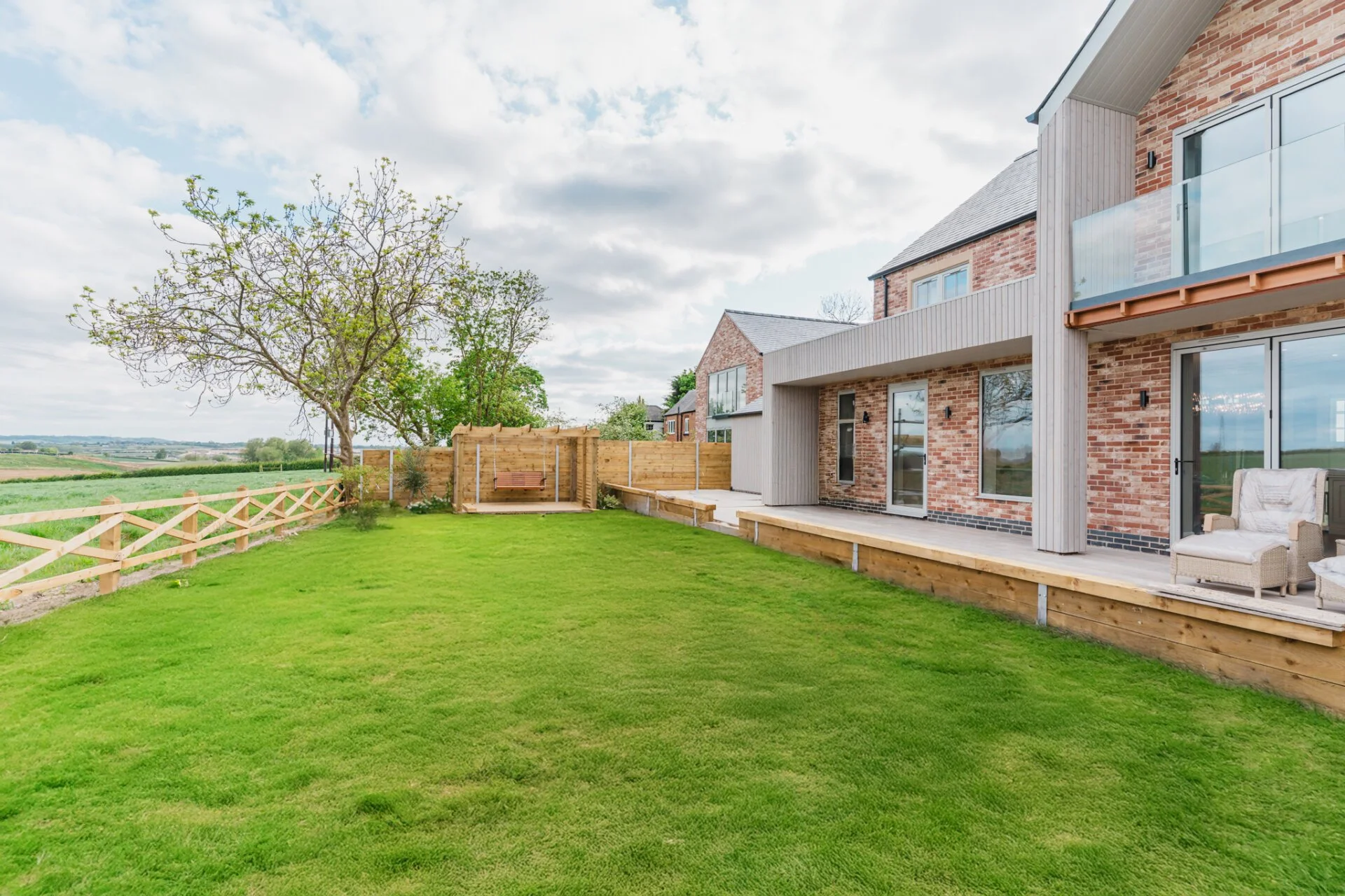 Outside, Mulberry House boasts an open oak-framed carport providing parking for two vehicles, along with a driveway offering additional parking for 2-4 cars. The rear garden presents a serene retreat, with a patio area, lush lawn, timber pergola, and fitted seating, ideal for alfresco dining or soaking in the breathtaking panoramic views of the English countryside and rolling hills. The exceptional Mulberry House at Berry Thorpe Farm is a rare opportunity to acquire a bespoke luxury home in an idyllic countryside setting, providing the ultimate in elegant, modern living for discerning buyers seeking a blend of sophistication and serenity in the heart of the Vale of Belvoir.